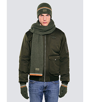 Eșarfă tricotată verde pentru bărbați, cu bordură contrastantă
