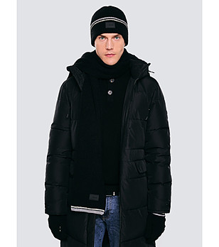 Eșarfă tricotată neagră pentru bărbați, cu bordură contrastantă WANDEGORS