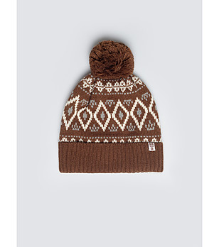 Căciulă tricotată maro cu pompon pufos IGORY