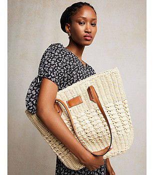 Geantă bej cu mânere maro Signa