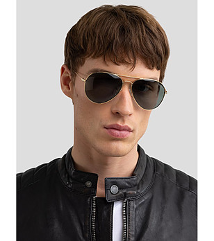 Ochelari de soare de damă cu ramă neagră și brațe aurii Klori