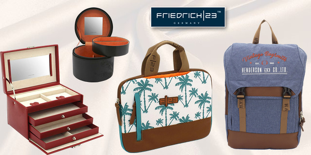 O selecție de rucsacuri, genți, truse de toaletă, portofele, cutii de bijuterii și multe altele de la brandul european Friedrich 23 și liniile sale Olomolo, Toito wear, Bond Street și multe altele. Fie că mergeți la cumpărături, într-o călătorie de afaceri sau pur și simplu în vacanță, puteți avea întotdeauna încredere în produsele Friedrich 23 - sinonime cu fiabilitatea și caracterul practic. Profitați acum!