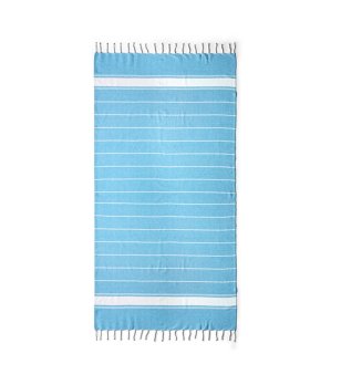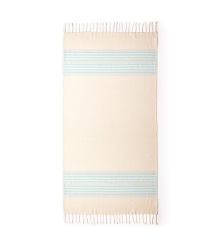Prosop sarong bej și albastru, fabricat din bumbac organic