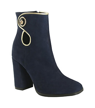 Cizme Didi De Damă Bleumarin Cu Trim Auriu