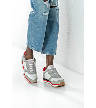 Adidasi de damă în gri, alb și roșu