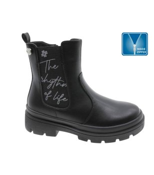 Ghete negre pentru copii cu șireturi și fermoar lateral