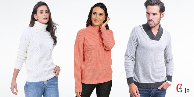 Lichidare de îmbrăcăminte pentru femei și bărbați de la brandul C&Jo. Lâna, cașmirul și mătasea sunt materialele cu care C&Jo va avea grijă de confortul tău. Simțiți confortul fiecărei atingeri cu selecția de pulovere și cardigane. Fii stilat si alege culoarea si modelul preferat din ofertele brandului.