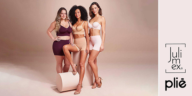 Produsele marca Plie și Julimex sunt realizate din țesătură din microfibră Emana®, cu cristale bio care absorb căldura corpului și o înlocuiesc cu raze infraroșii, microfibră Amni, țesătură fără cusături și Lycra®, care au efect de slăbire și modelare.