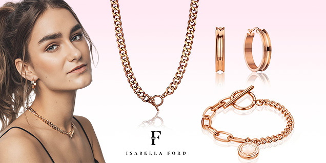 Alege o bijuterie moderna - bratara, cercei sau colier cu marca Isabella Ford.