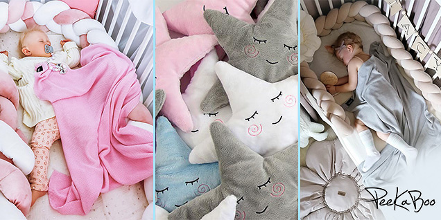 Costume pentru copii și bebeluși marca PeeKaboo și perne decorative - o varietate de culori și modele din bambus.