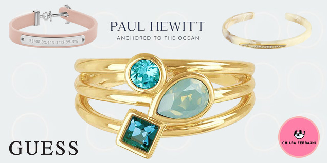 Coliere, cercei, brățări și inele cu mărcile Guess, Folli Follie, Paul Hewitt, Chiara Ferragni, Adore și altele. Finisaje argintii și aurii, accente cu pietre colorate și modele potrivite pentru orice look și stil.