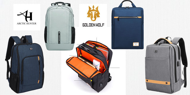 Rucsacuri cu mărcile Arctic Hunter și Golden Wolf - o varietate de modele cu porturi USB, modele cu opțiune de închidere într-o gamă de culori actuală, cu modele rezistente și compartimente practice pentru bagaje și accesorii.