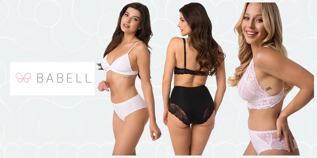Colecție de lenjerie intimă pentru femei de la brandul european Babell. O varietate de tanga, boxeri și bikini cu talie joasă și înaltă, dantelă, design curat și efect strângător. Colanți, body-uri și corsaje. O combinație de lux și confort în viața de zi cu zi. Mărimi de la S la 4XL.