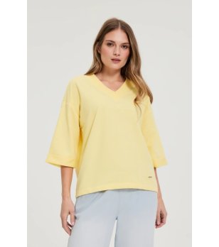 Bluză galbenă de damă cu decolteu în V