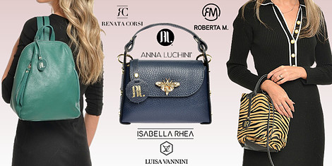 Genți de mână, poșete, curele și multe altele din piele naturală de la mărcile Anna Luchini, Isabella Rhea, Carla Ferreri, Renata Corsi și altele.