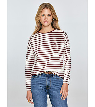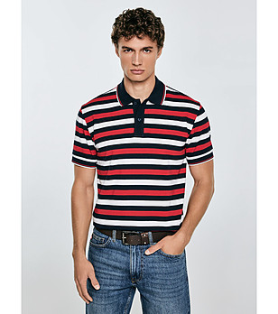 Bluză bărbătească din bumbac cu dungi roșii, negre și albe Seulir
