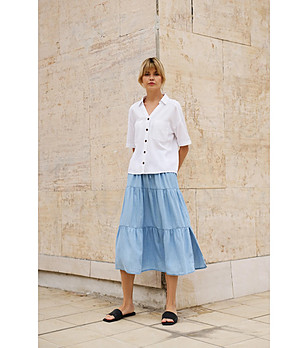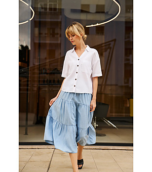 Cămăși, fuste și tunici pentru femei cu marca Moodo - combinații colorate, materiale și croieli practice și rezistente pentru orice look și stil.