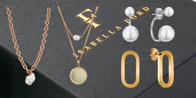 Alege o bijuterie modernă - o brățară, cercei, colier și o pară de bijuterii marca Isabella Ford!