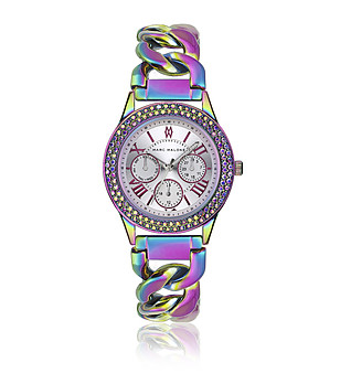 Ceas de damă curcubeu cu cadran roz și cristale