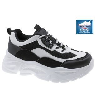 Teniși de damă în alb și negru cu talpă ultraușoară