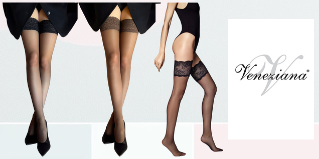 Colecție de șosete lungi de la Veneziana. Modele cu bordură din silicon, pentru portjartier sau până sub genunchi.
