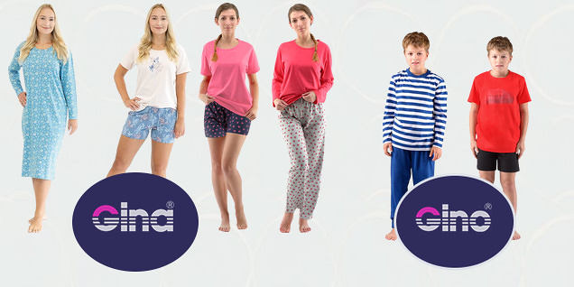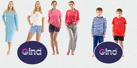 Pijamale, corsaje, șosete, cămăși de noapte, pantaloni de pijama și multe altele pentru femei și copii cu marca Gina - o varietate bogată de culori și imprimeuri actuale din țesături cu conținut de bumbac pentru un confort irezistibil.