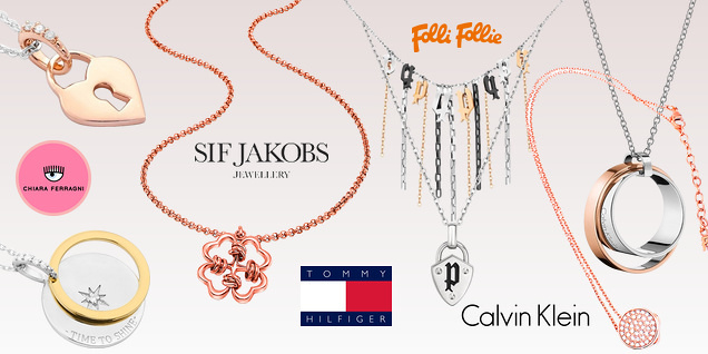 Coliere cu mărcile Tommy Hilfiger, Secrecy, Sif Jakobs, Adore, Calvin Klein, Police și altele într-o gamă diversă de culori și modele cu accente de pietre și mărgele pentru un look feminin.