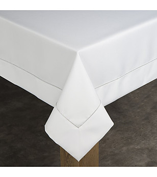 Față de masă albă cu bordură argintie 145x300 cm