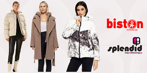 Vânzare de îmbrăcăminte pentru femei cu mărcile Splendid și Biston. O varietate de jachete, veste, paltoane și gilete. Mărimi de la S la 3XL. Alegeți acum cu o reducere!