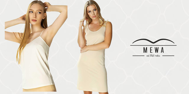 Compania Mewa își prezintă colecția de lenjerie intimă și îmbrăcăminte pentru femei - halate de baie, bikini, corsaje, căptușeli, bluze, topuri și multe altele. Mărimi de la 36 la 58. Simțiți confortul cu ofertele noastre de la Mewa!