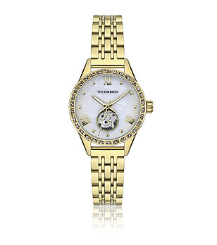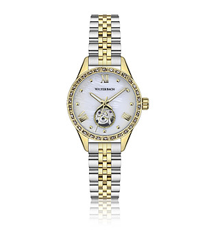 Ceas automat de damă, bicolor, cu cadran alb din sidef