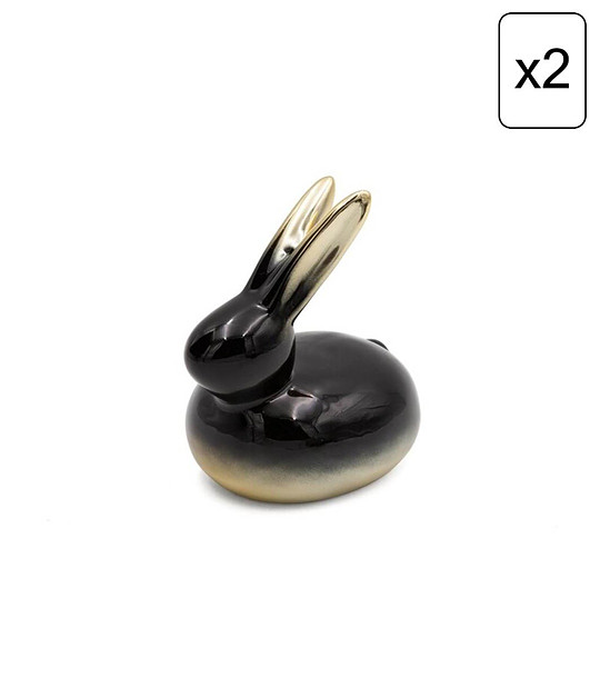 Eurofirany 2 buc figurine decorative negre Iepure cu detalii aurii 10x10x7 cm 2 buc figurine decorative în formă de iepure.