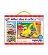 Set de 4 puzzle-uri cu vehicule.