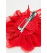 Accesoriul are formă de floare și este prins de o clemă metalică. Este potrivit pentru decorarea părului sau a hainelor.
