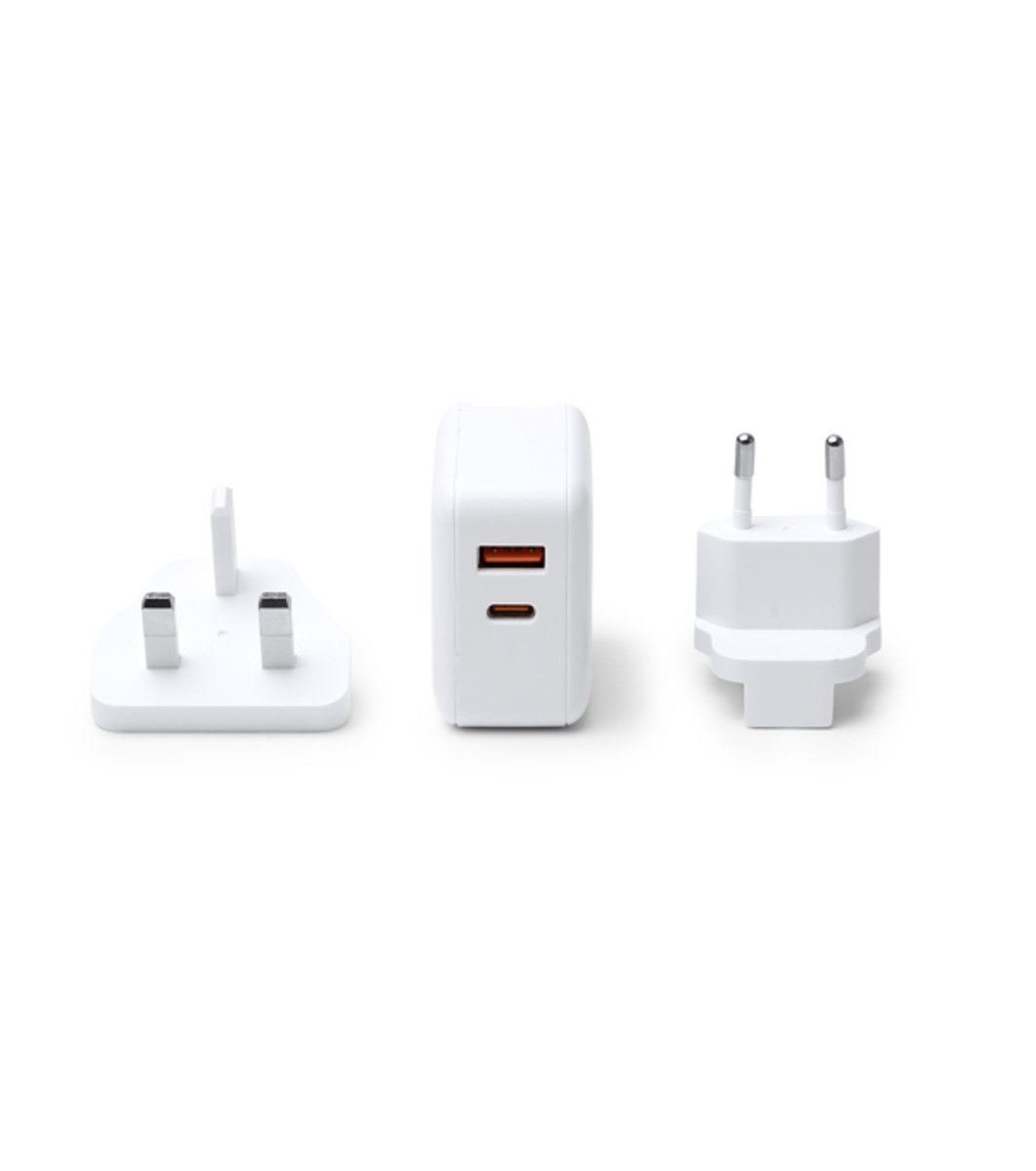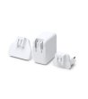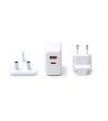 Adaptor universal de călătorie cu conectori interschimbabili. Valabil pentru utilizare în Europa, Marea Britanie, Asia, SUA și Australia.