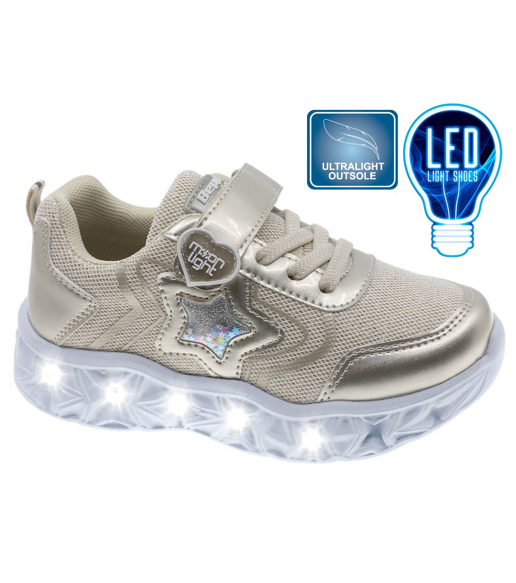 Beppi Adidași aurii cu luminițe și stea decorativă Talpa are lumini LED