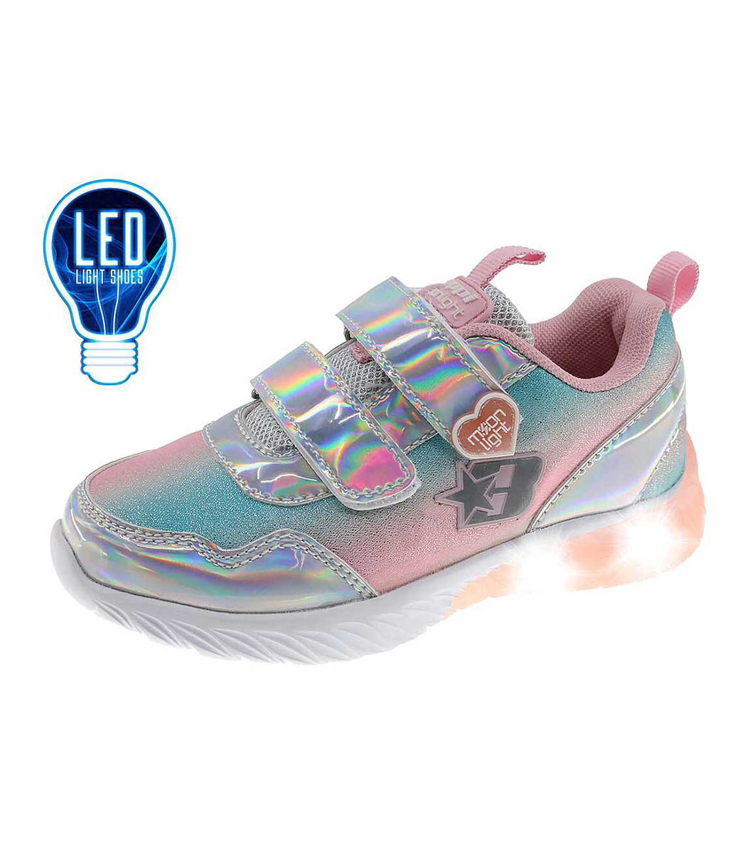 Adidași pentru copii argintii și roz cu talpă luminoasă