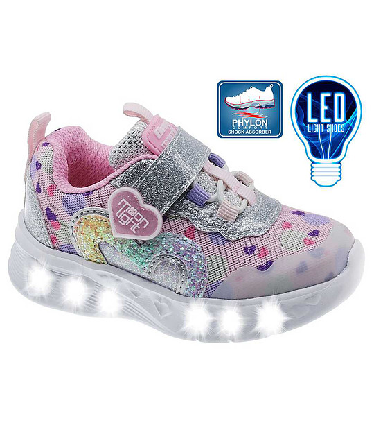 Beppi Adidași pentru copii roz și argintiu cu lumini LED Talpă Phylon - material ușor și flexibil, care oferă moliciune și confort piciorului