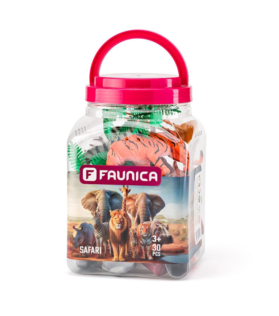 Animalele sălbatice - figurine de joacă într-o găleată, 30 de piese este o ofertă excelentă pentru joacă și educație de la marca Faunica a companiei cehe Woodyland.