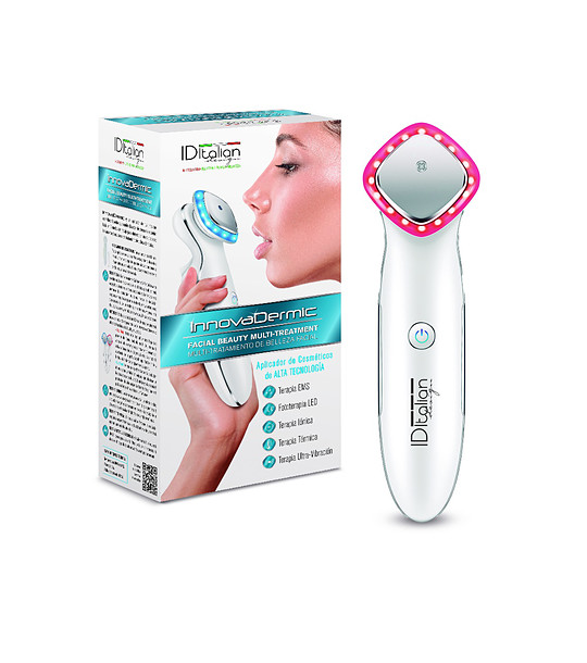 Italian Design Aplicator cosmetic INNOVADERMIC cu terapie • Dispozitiv wireless pentru aplicarea produselor cosmetice faciale cu 3 moduri de funcționare.