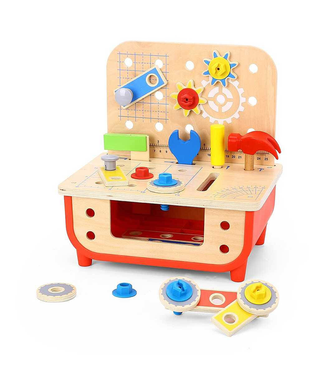 Pentru micii meșteri entuziaști care caută neobosit ciocanul și ferăstrăul tatălui și vor să se implice în orice reparație acasă. Cu diversele sale unelte, șuruburi și piulițe, colorate în culori care atrag atenția copiilor, acest atelier spectaculos îi va satisface chiar și pe cei mai pretențioși.  Printre acestea se numără un ciocan, cheie, șurubelniță, șuruburi, piulițe, roți dințate, plăci și multe altele.