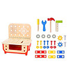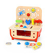 Tooky Toys Atelier de lemn pentru copii Micul maestru Pentru micii meșteri entuziaști care caută neobosit ciocanul și ferăstrăul tatălui și vor să se implice în orice reparație acasă. Cu diversele sale unelte, șuruburi și piulițe, colorate în culori care atrag atenția copiilor, acest atelier spectaculos îi va satisface chiar și pe cei mai pretențioși.  Printre acestea se numără un ciocan, cheie, șurubelniță, șuruburi, piulițe, roți dințate, plăci și multe altele.