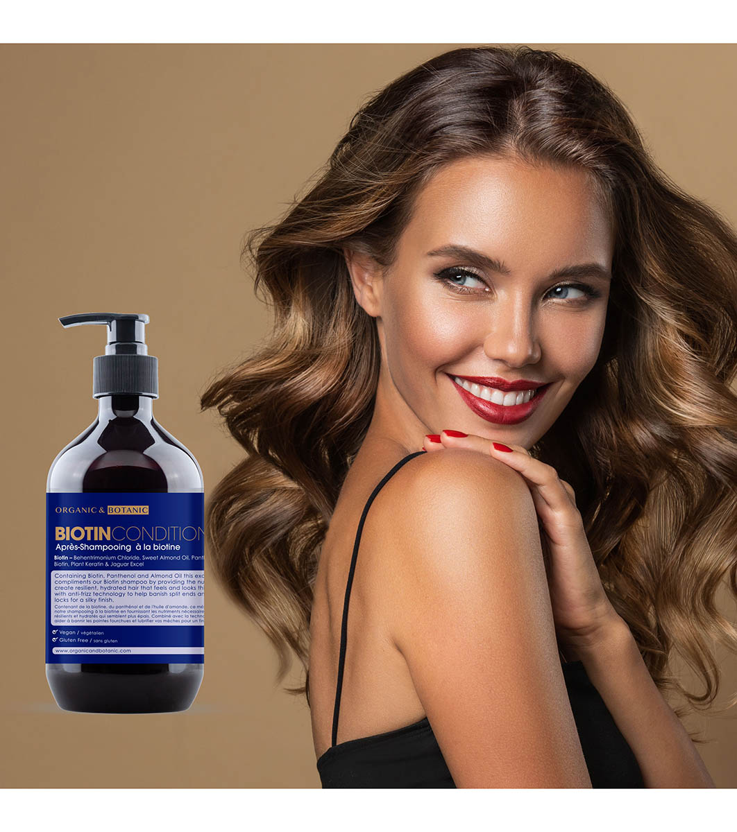 • Balsam de păr proteic cu ingrediente vegane pentru a întări părul prin puterea biotinei