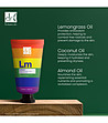 Apă, Alcool cetearilic, Acid stearic, Glicerină, Trigliceridă caprilică/caprică, Ulei de Cocos Nucifera (Nucă de cocos), Ulei de semințe de Helianthus Annuus (Floarea-soarelui), Ulei de Prunus Amygdalus Dulcis (Migdale dulci), Ulei de semințe de Vitis Vinifera (Struguri), Fenoxietanol, Alcool benzilic, Hidroxid de sodiu, Ulei din fructe de Hippophae Rhamnoides (Cătină), Gumă xantan, Alantoină, EDTA disodic, Citral, Acid dehidroacetic, Ulei de Cymbopogon Flexuosus, Geraniol, Linalool, Citronelol, Eugenol, Isoeugenol, Limonene.