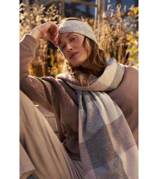 Banda pentru femei cu design tricotat și față răsucită. Potrivită pentru vreme rece, oferind confort și stil.