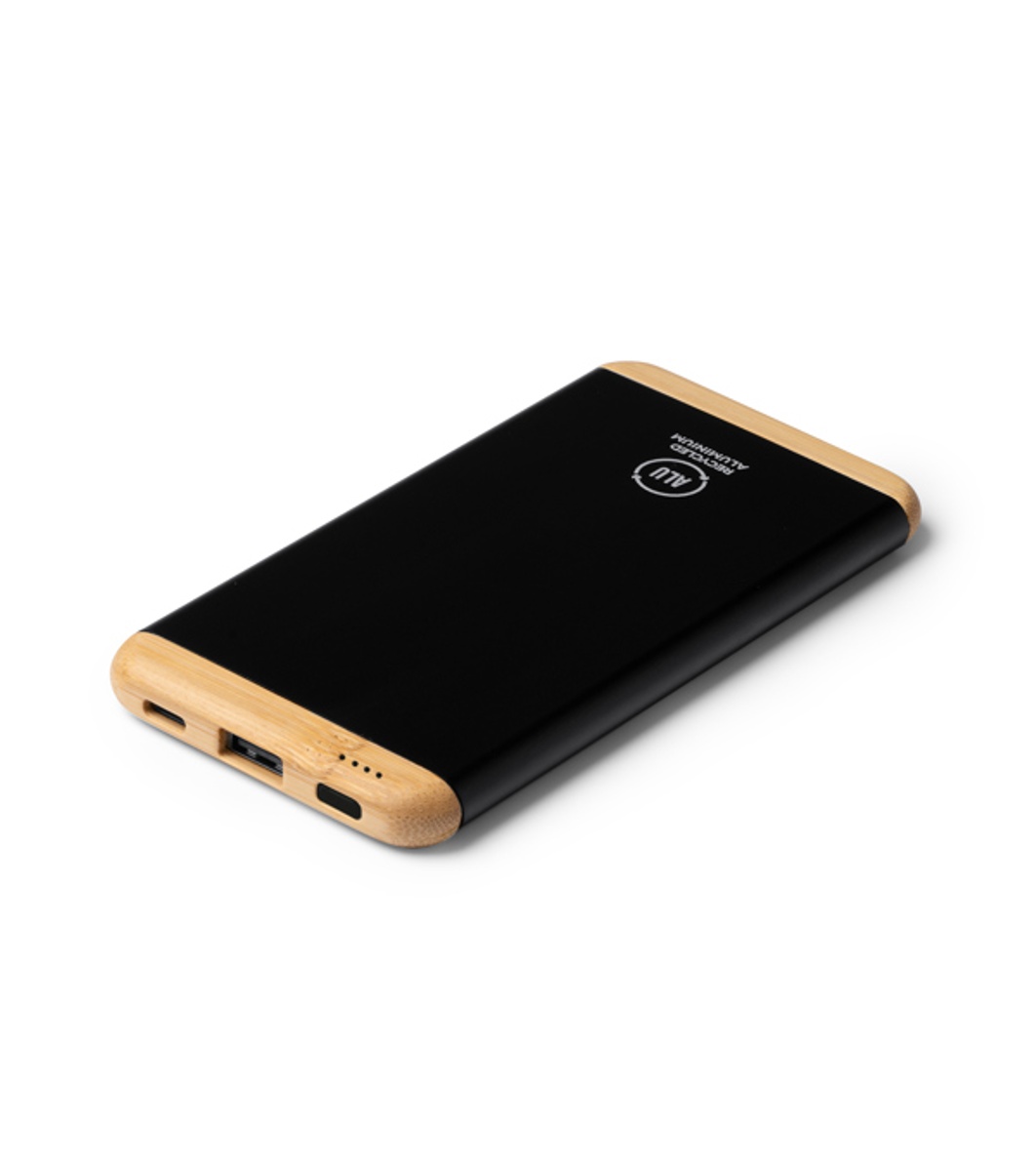 Baterie externă GULER din aluminiu reciclat și bambus, de culoare neagră