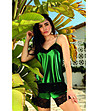 p>Zielony. szmaragdowy kolor w kombinati z satyną to coś. co obecnie jest bardzo modne. Se prezintă elegant. zmysłowo. feminin si frumos. Śmiało sięgnij po tę nowowść od DKaren - Remi. dwuchęściowy komplet bielizny. w kierom cudownie wypoczniesz. Czarna koronka adaugă caracter.