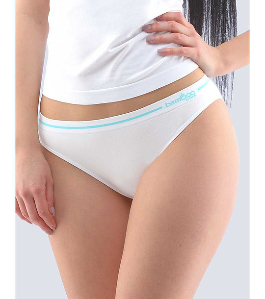 Gina Bikini alb cu ornamente albastre Lana Material moale