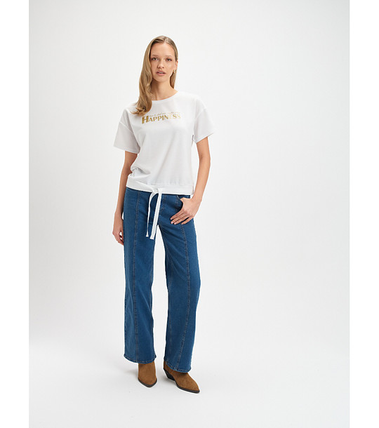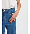 Blugi albaștri cu croială dreaptă și cusături decorative în față