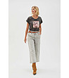 Moodo Blugi de damă din bumbac gri 7/8 Imprimat în față
